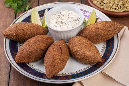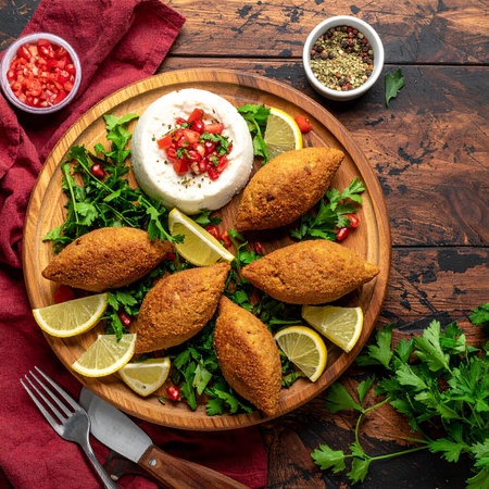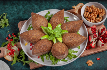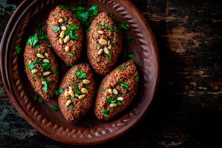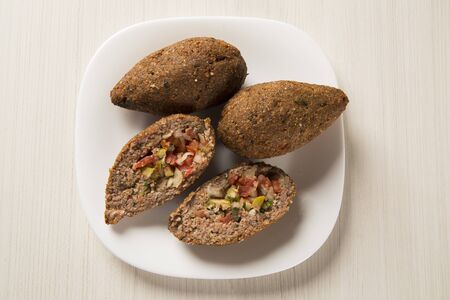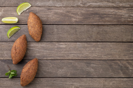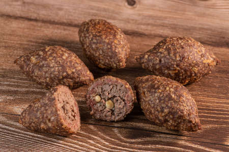 Traditional lebanese kibbeh on wooden table