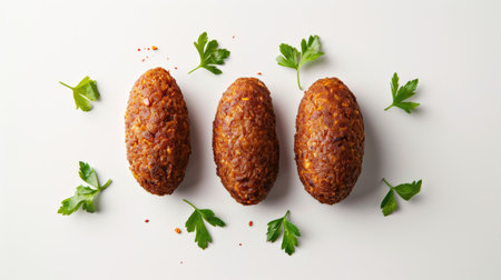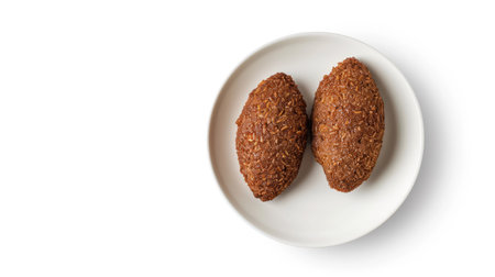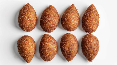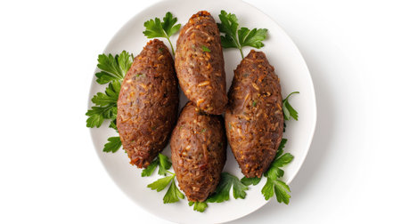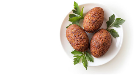 Traditional Lebanese kibbeh isolated on white background, top view, perfect for Middle Eastern cuisine themes, with ample copy space