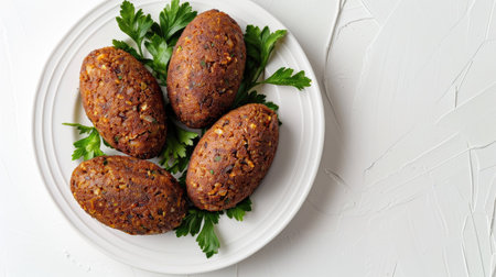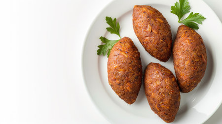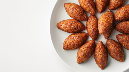 Lebanese kibbeh on a white background, top view, isolated with plenty of copy space, ideal for food blogs and culinary designs