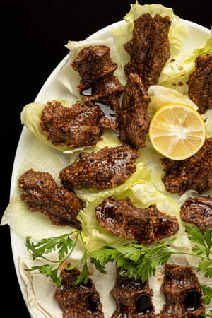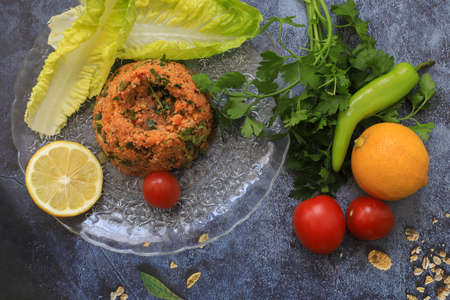 Traditional delicious Turkish foods; bulgur meatball (Icli kofte), Turkish kitchen.