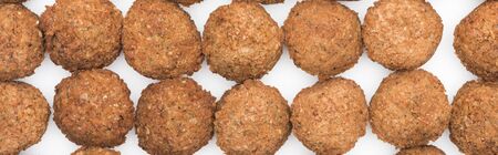 flat lay with delicious fresh cooked falafel balls isolated on white, panoramic shot