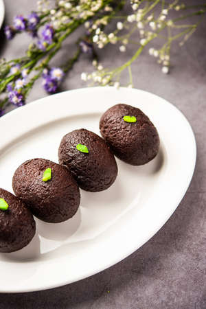 Indian Sweet Food Sweet Black Gulab Jamun Also Known as Kala Jamun, Black Jamun or Dry Kala Jam