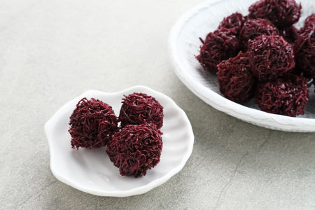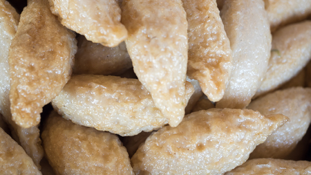 Grubi, Indonesian snack made from sweet potato with crispy texture and sweet taste. This grubi has a round shape.