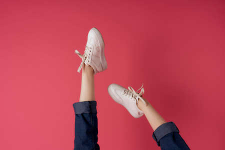 White sneakers on the asphalt. The concept of a healthy lifestyle.