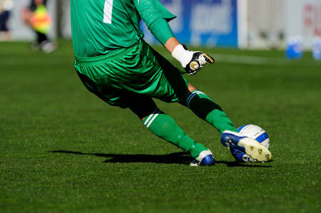 crop football player shooting ball. High quality photo