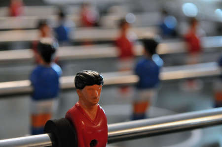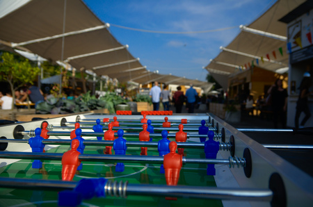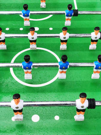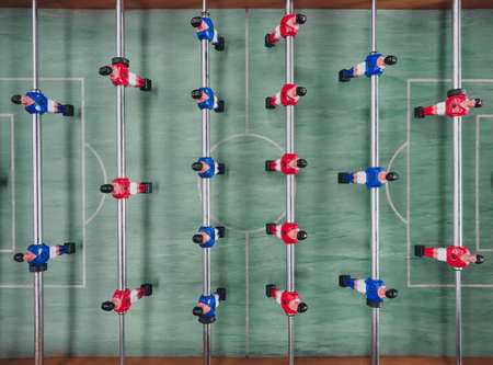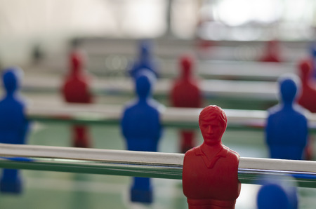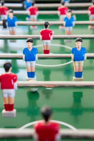 Concept of Board games. Table football game, Soccer table with red and blue players