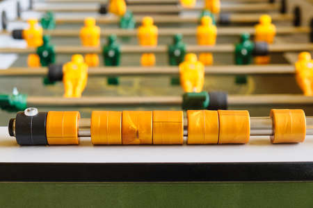 Foosball table soccer. Team sport, table football players game. Competitive table game