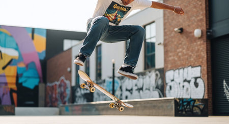 A professional skater performing a spectacular jump in an urban playground AI generated