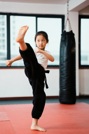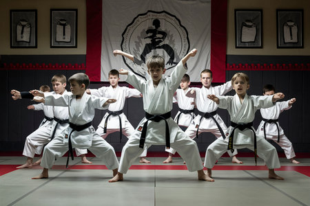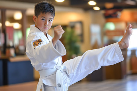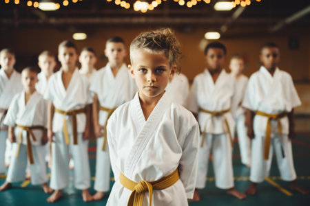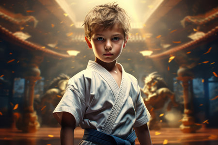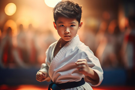 Energetic Karateka child gym. Karate sport. Generate Ai