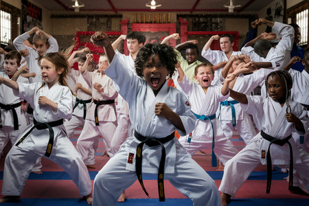 Asian kids karate martial arts. Taekwondo. Generative Ai