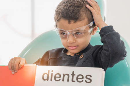A child with a dentist in a dental office. Dental treatment in a children's clinic.