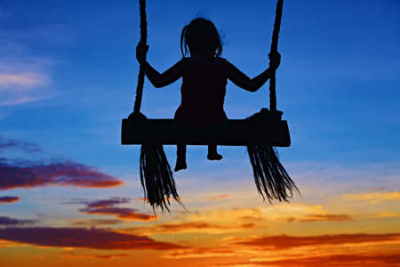 Girl on swing - Young woman swinging at sunset