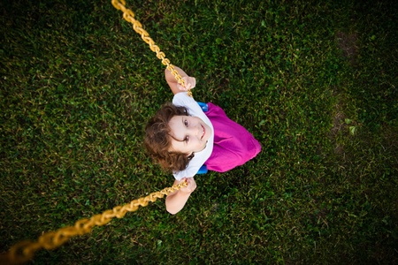 Adorable little girl having fun on a swing.