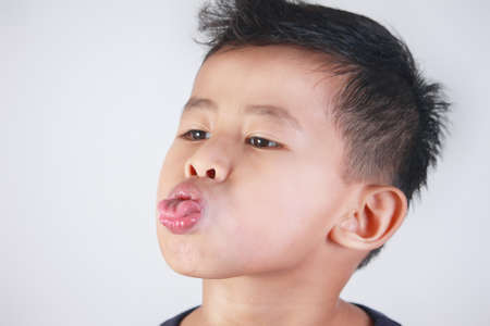 Portrait of a cute little asian boy with his mouth open