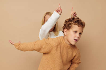 Little boy and girl gesticulate with their hands together Lifestyle unaltered