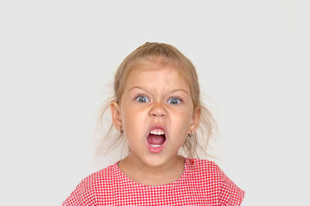 blond caucasian little girl screams.studio shot