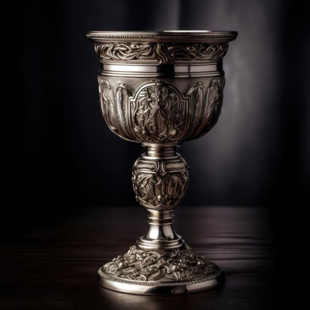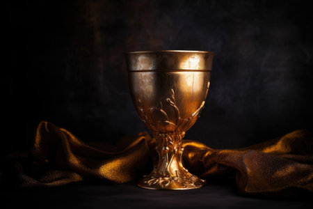 golden cup in a spotlight against dark backdrop, created with generative ai