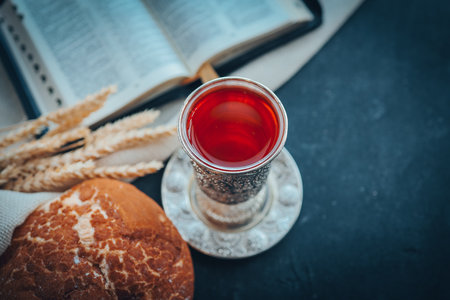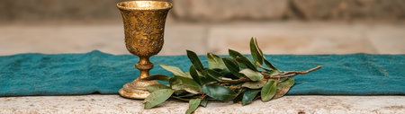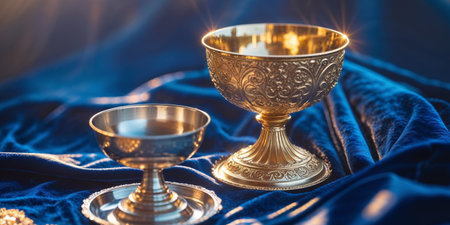 AI Generated. Sacred Communion Set Upon a Deep Blue Cloth Bathed in Sunshine