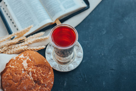 Pesah celebration concept (jewish Passover holiday). Traditional bread and wine