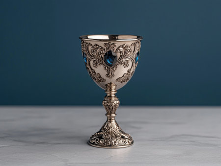 A stunning silver Kiddush cup used to sanctify wine during Shabbat and holidays