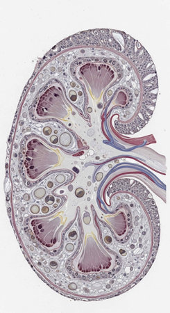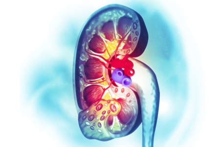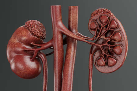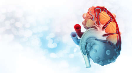 Anatomical image of the human kidney in cross section. disorders of kidney physiology,