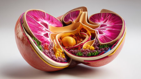 A stunning cross-sectional illustration of a fruit revealing vibrant colors and intricate internal structures, perfect for educational and artistic purposes.