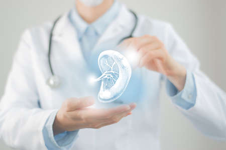 Conceptual image of dialysis, organ donation, and kidney health with doctor and technology