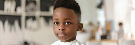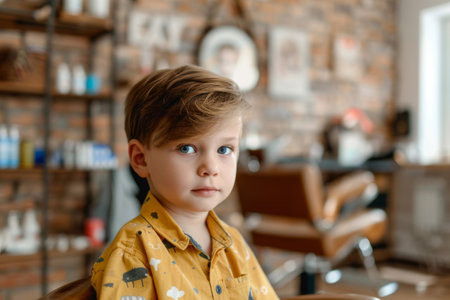 Portrait of a little boy in a barbershop.