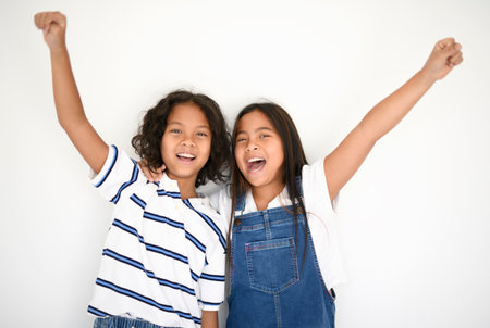 two 9 years thailand twin on studio shot isolated white background