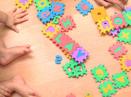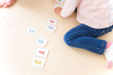 the child is playing with the letters of alphabet. Intellectual play, preschool primary education