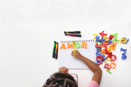 Girl plays with letters and forms the word Love as a representation of what children in Latin America need