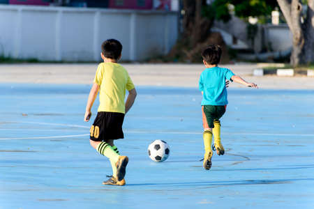 Running Soccer Football Players. Footballers Kicking Football Match game. Young Soccer Players Running After the Ball. local Thailand