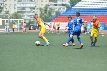 Orenburg, Russia - 1 June 2016: The boys play football in the preliminary games football festival Lokobol-2016.
