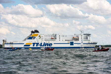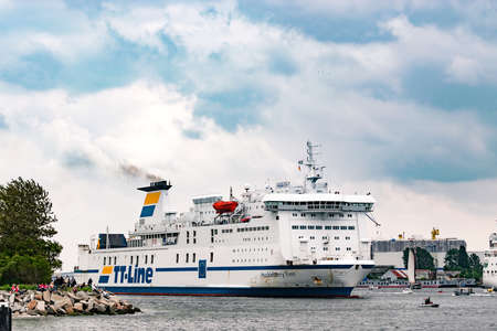 Rostock, Germany - August 2016: tt-line ferry in the harbour of Warnemuende