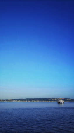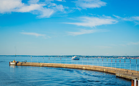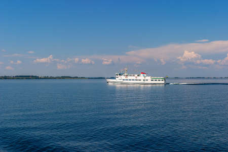 Ferry boat floating open sea, transportation liner from Denmark Helsingor to Sweden Helsinborg.