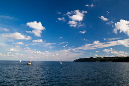 Seascape with little sailboats on Baltic sea in north Germany