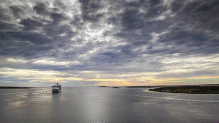 Cruise liner in Baltic sea, Scandinavia. Panoramic view