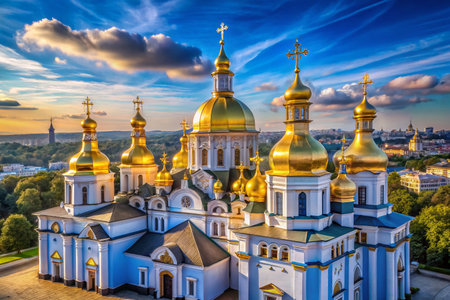 Kyiv's Golden-Domed Monastery: Majestic Ukrainian Orthodox Church, Panoramic View