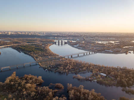 Beautiful sunset over Kyiv city from above.