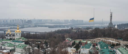 Panorama of Kiev with Dniepr river, Kiev-Pechersk Lavra monastery. Kiev, Ukraine.
