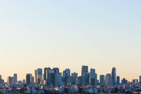 Asia Business concept for real estate and corporate construction - panoramic modern city skyline aerial view of shinjuku area with expressway under sunset sky in Tokyo, Japan