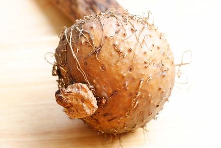 Organic taro on yellow background, Ugly vegetable concept, food trend
