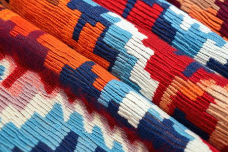 close-up of colorful navajo rug patterns and textures, created with generative ai