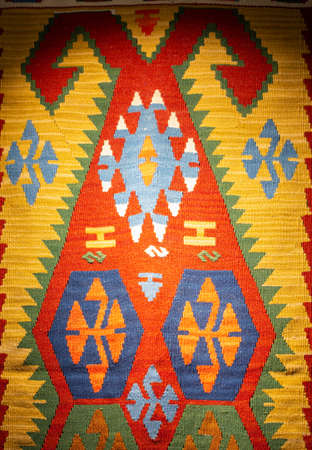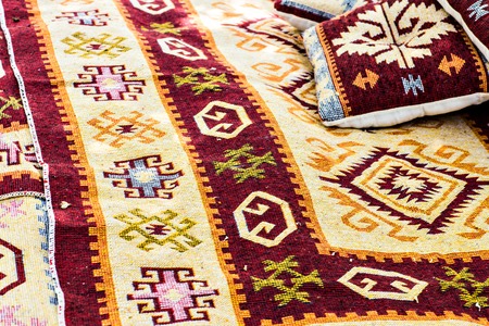 a beautiful interesting background with handmade Turkish rugs in close-up