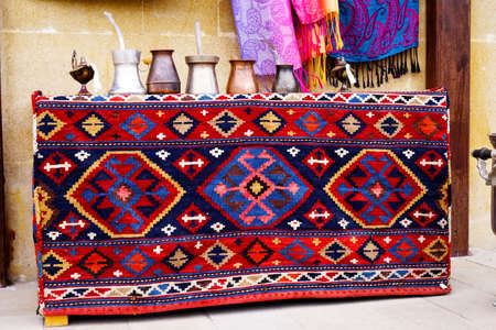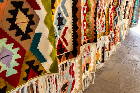 Handmade woven rug and tapestry,vintage carpets on a Turkish bazaar. Traditional Turkey rugs in Egypt Bazaar Turkey