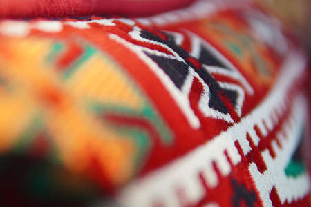 Close-up of a beautiful Ukrainian embroidery on the fabric