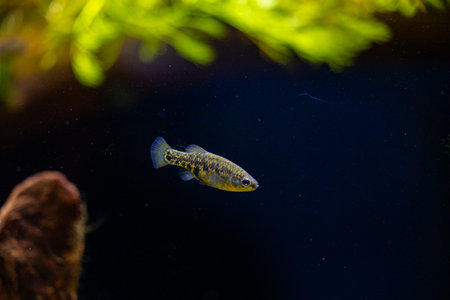 Eastern mosquitofish (Gambusia holbrooki), Small fish from North America introduced in Europe at the beginning of the 20th century. Male.