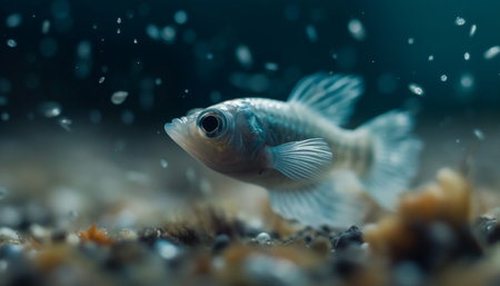 aquatic beauty, a smooth fish glides elegantly in a see-through tank, its vibrant scales glistening brightly