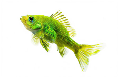 Vibrant Close Up of Freshwater Fish Against Blurred Green Background.