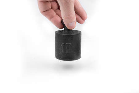 Vintage metal weight for a scale on a white background